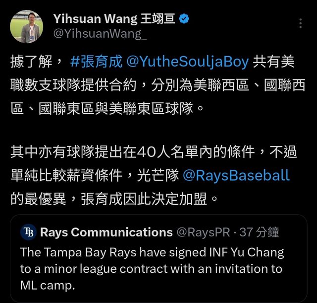 → cplusplus426: 所以光芒不在40人但給比較多 考量要上MLB應該要以 02/20 21:35