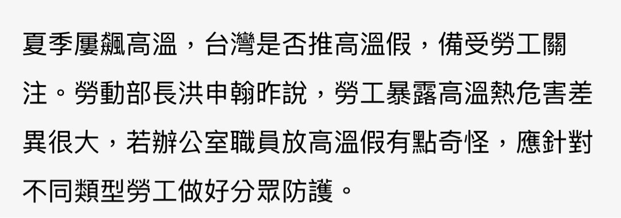 roelove: 勞動部長不懂高溫假的適用勞工類型 07/01 20:51