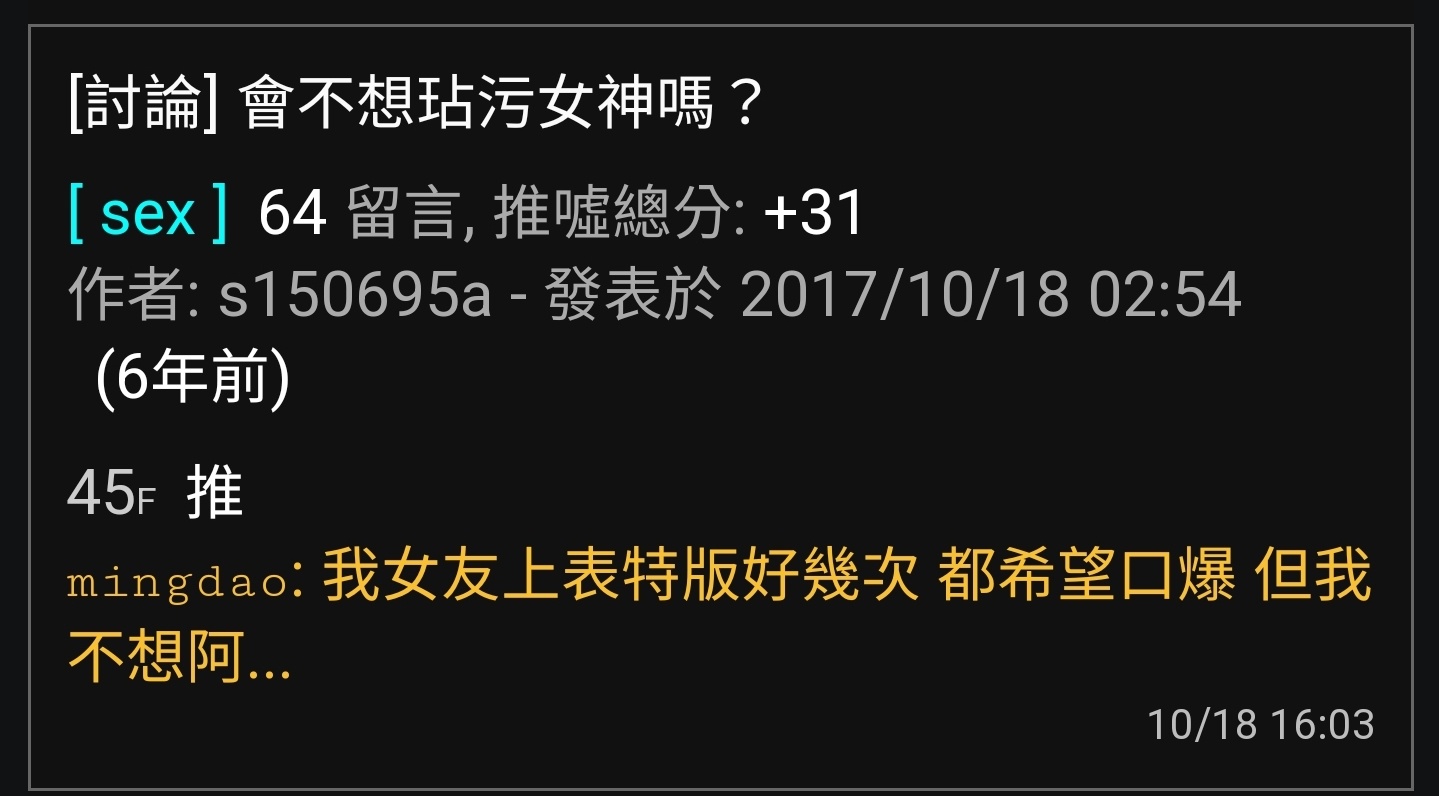 推 mingdao: 所以本來是要推哪一篇說誰愛約炮呢? 說清 111.83.162.198 10/27 16:38