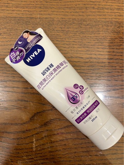 第一個是妮維雅的夜間美白保濕精華乳,這個是我一直都有在擦的