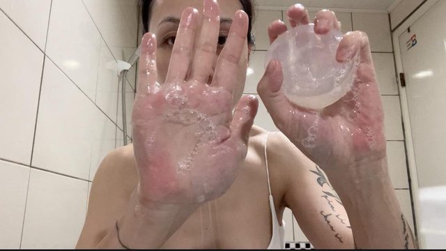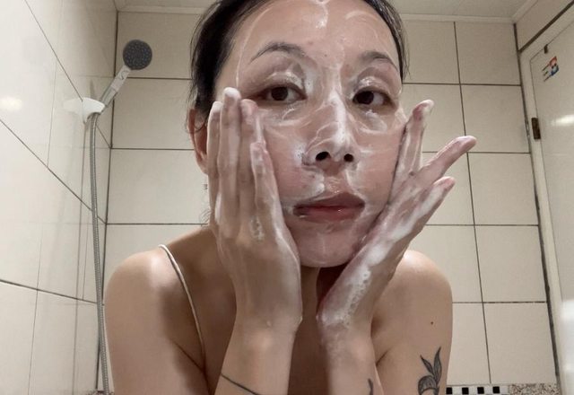 洗臉就是卸完妝後,臉濕濕、手濕濕,開始嚕皂。
