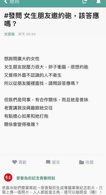 推 Gentile : 會這樣問表示不想 至少沒女生那麼想 06/09 23:15