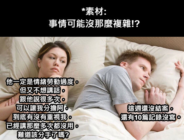 推 jeffguoft : 男生跟女生思考方式差很多,有什麼想法直接講06/13 13:36