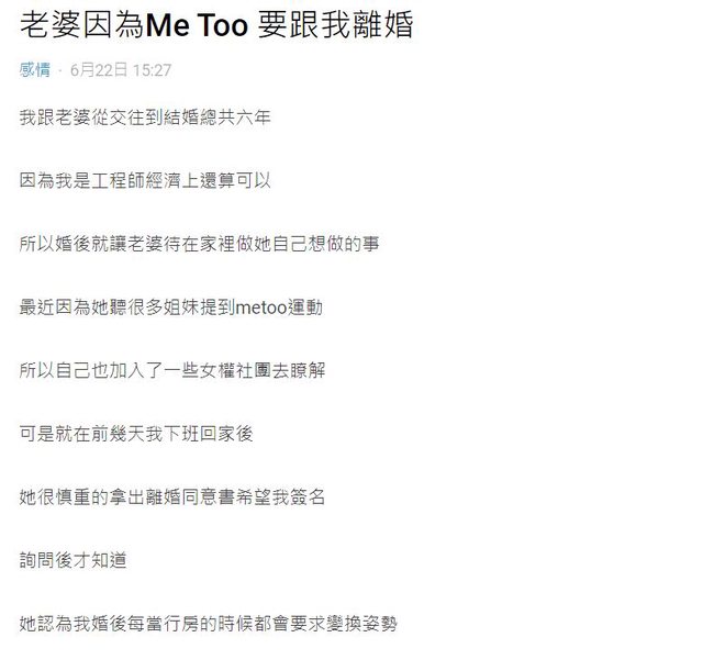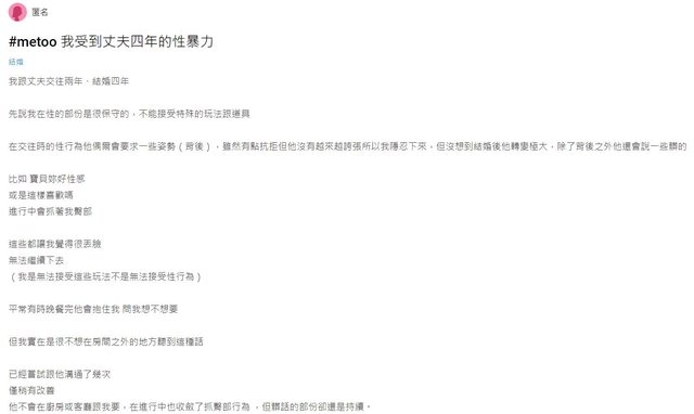 噓 blackstyles : 結婚不是成為性奴 我不舒服就是性騷擾啦 笑死 06/26 11:47