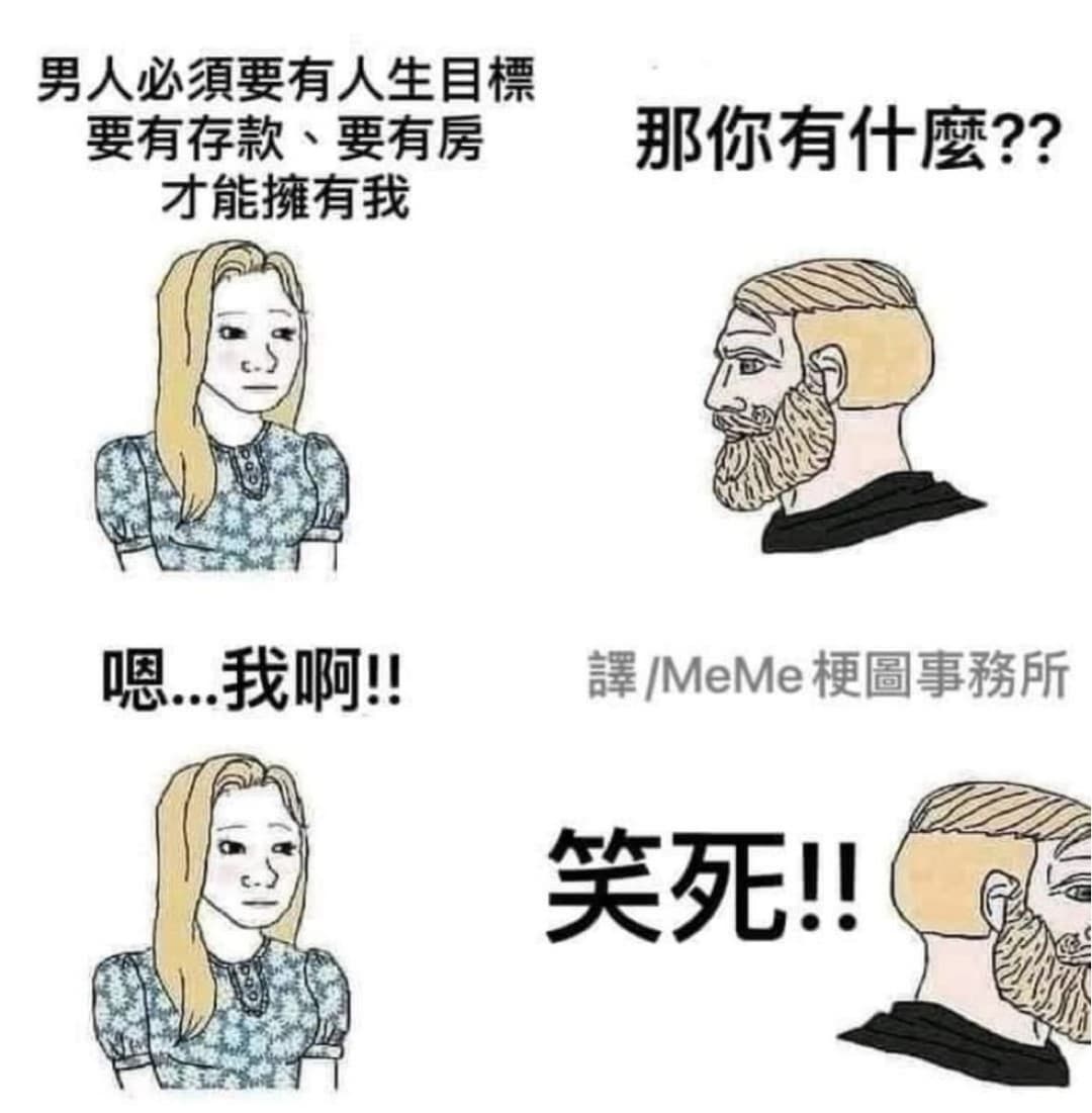 推 OreoMan09 : 婚姻本來就是價值交換啊 怎麼這麼多人還不明白? 09/23 04:50