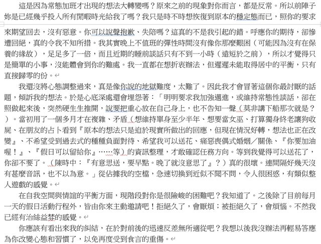 所以我猜想她比較喜歡一起享樂的感覺。最近回想起來,在她開始常態加班之後,最恰當