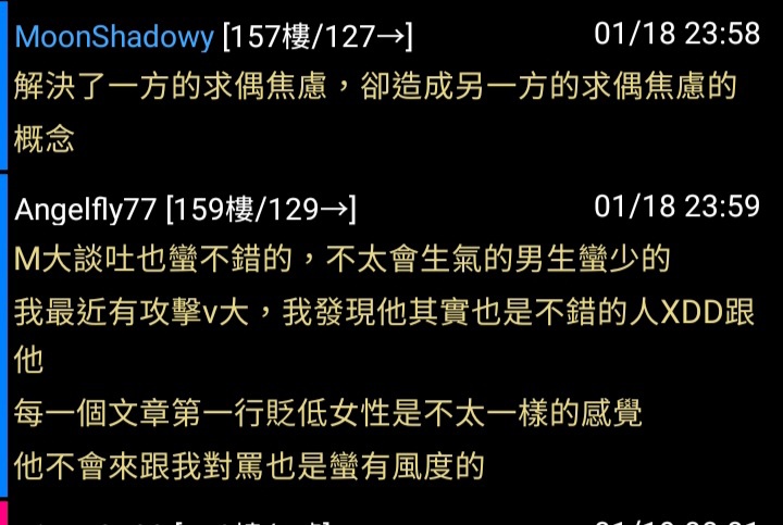→ MoonShadowy : 便,以後就不要看到仇女文生氣,因為人家會更仇女 01/21 15:19
