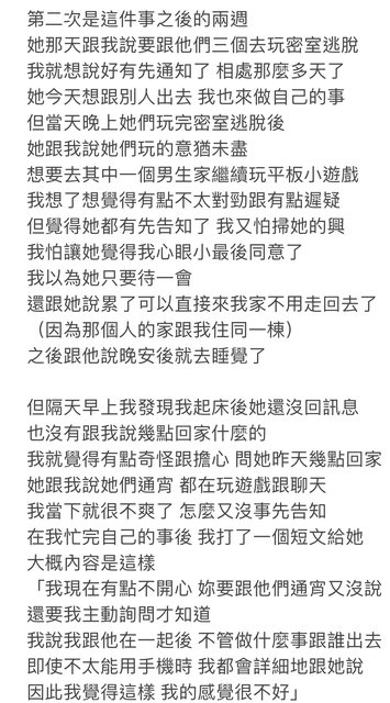 → DICKASDF : 去男生家玩甚至過夜 本身有隔縣市的男友 02/20 15:12