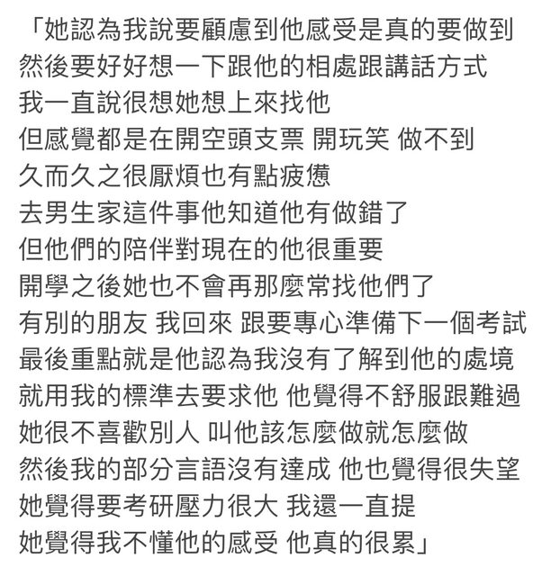 → NCTUkober : 她根本也不會聽你的 別太天真了 大概是這樣 結案 02/18 17:08