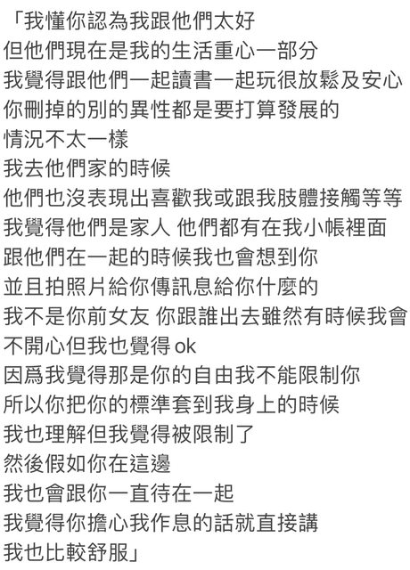 推 sooge : 沒救了= =,你不能限制她不能跟男生好友在一起,這 02/17 18:22