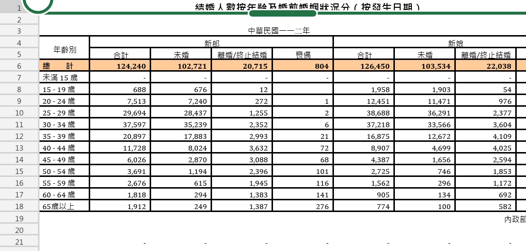 推 sleepbear15 : 我比較好奇為什麼統計表中新郎和新娘數值差異這麼大 06/28 12:03