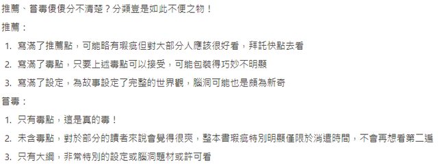 推 tamynumber1 : 毒宗的內部推薦嗎?我剛看完簡介就毒發了 05/24 17:20