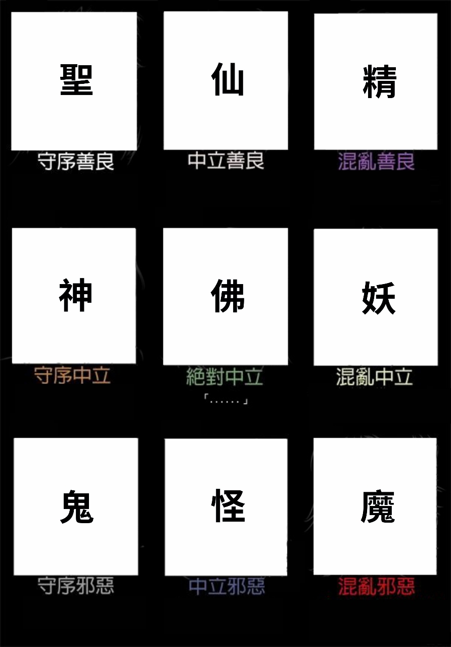推 qaz31415 : 玄幻版的陣營九宮格。 02/27 10:06