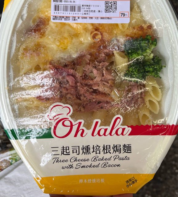 【商品名稱/價格】:三起司燻培根焗麵$79