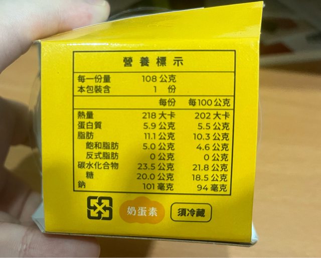 【規格/內容物/熱量】:108g/218大卡