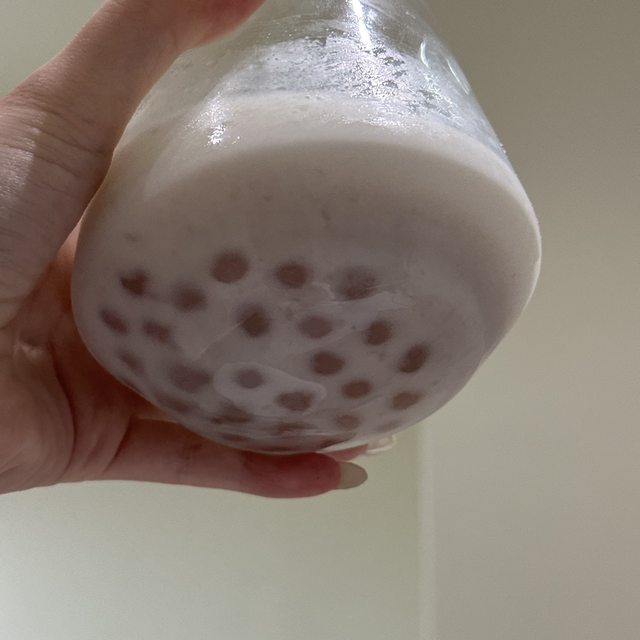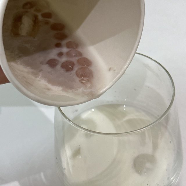 倒在玻璃杯裡喝~還真的有芋泥