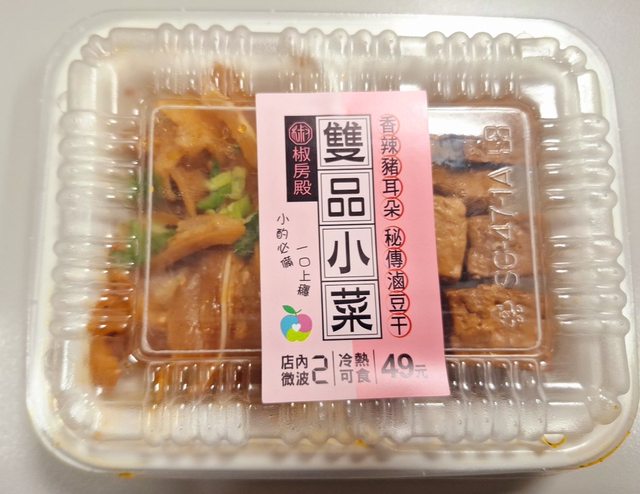 【商品名稱/價格】:椒房殿-雙品小菜-香辣豬耳朵/秘傳滷豆干/49元