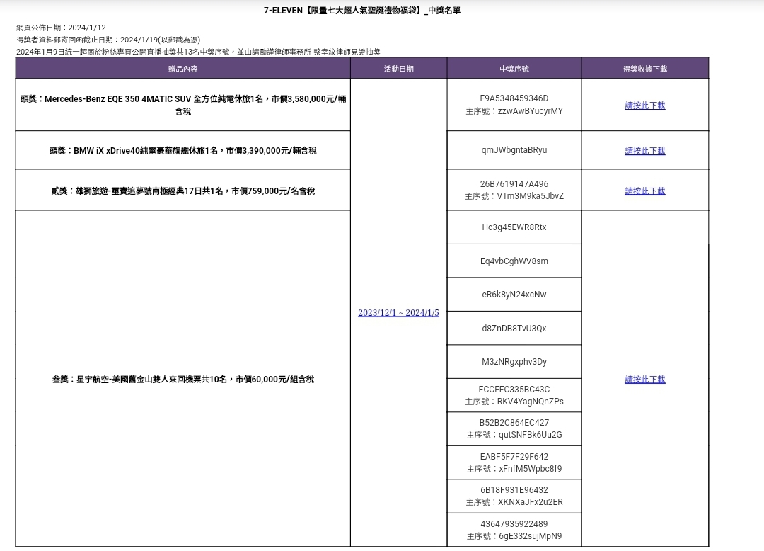 標題[問題] 2023 7-11 聖誕福袋開獎了沒