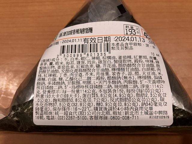 【商品名稱/價格】:新加坡香辣海鮮飯糰 / 45 元