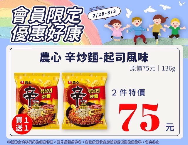 推 stes5812: 辛炒麵原味比較好吃結果這次只有起司特價.... 02/25 20:23