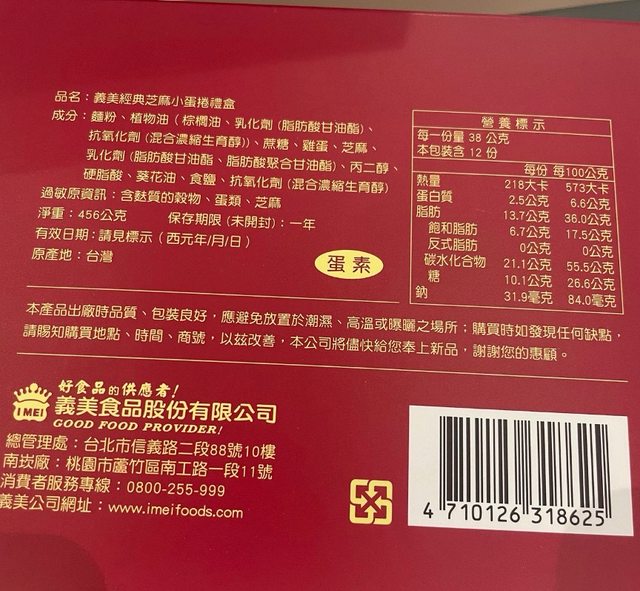 【商品名稱/價格】:義美經典芝麻小蛋捲/打折後297元