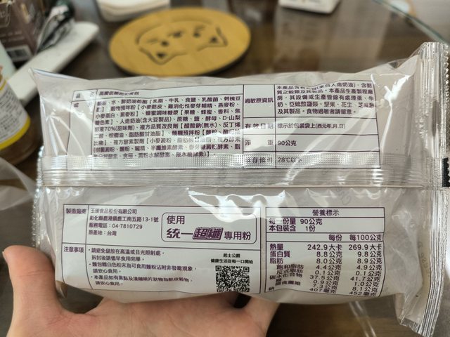 餐包:90G(實際100G)243大卡