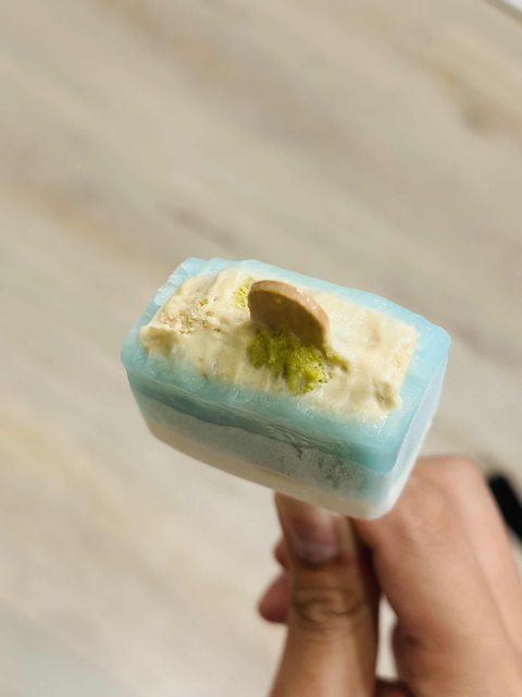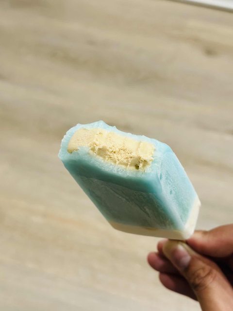 咬到最下面是濃郁的奶香冰層,質地較黏稠,鹹甜鹹甜,作為整支冰棒的最後會讓人想再