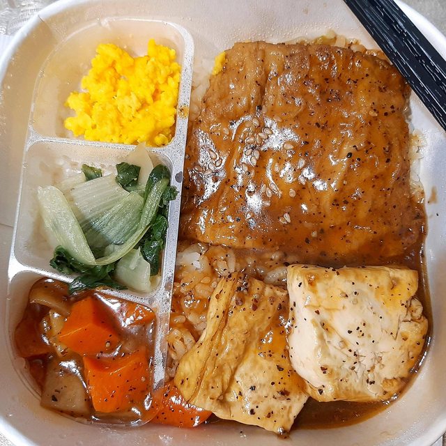 天素地蔬i地圖裡沒有顯示過這款,然後便當又跟其他鐵板豬肉便當擺在一起,所以一直不