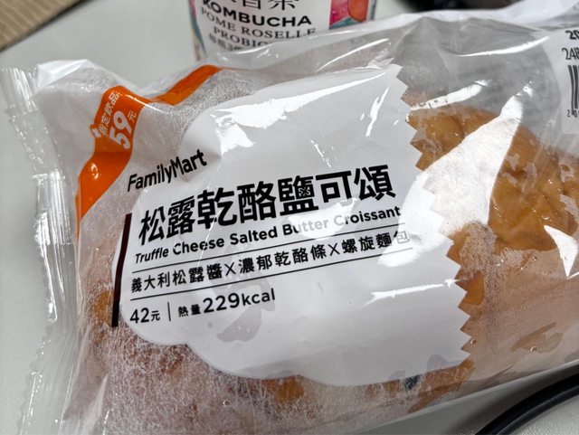 標題[商品] 全家 松露乾酪鹽可頌+石榴紅康普茶
