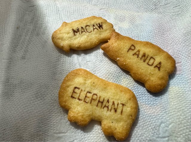餅乾上面有動物的英文單字