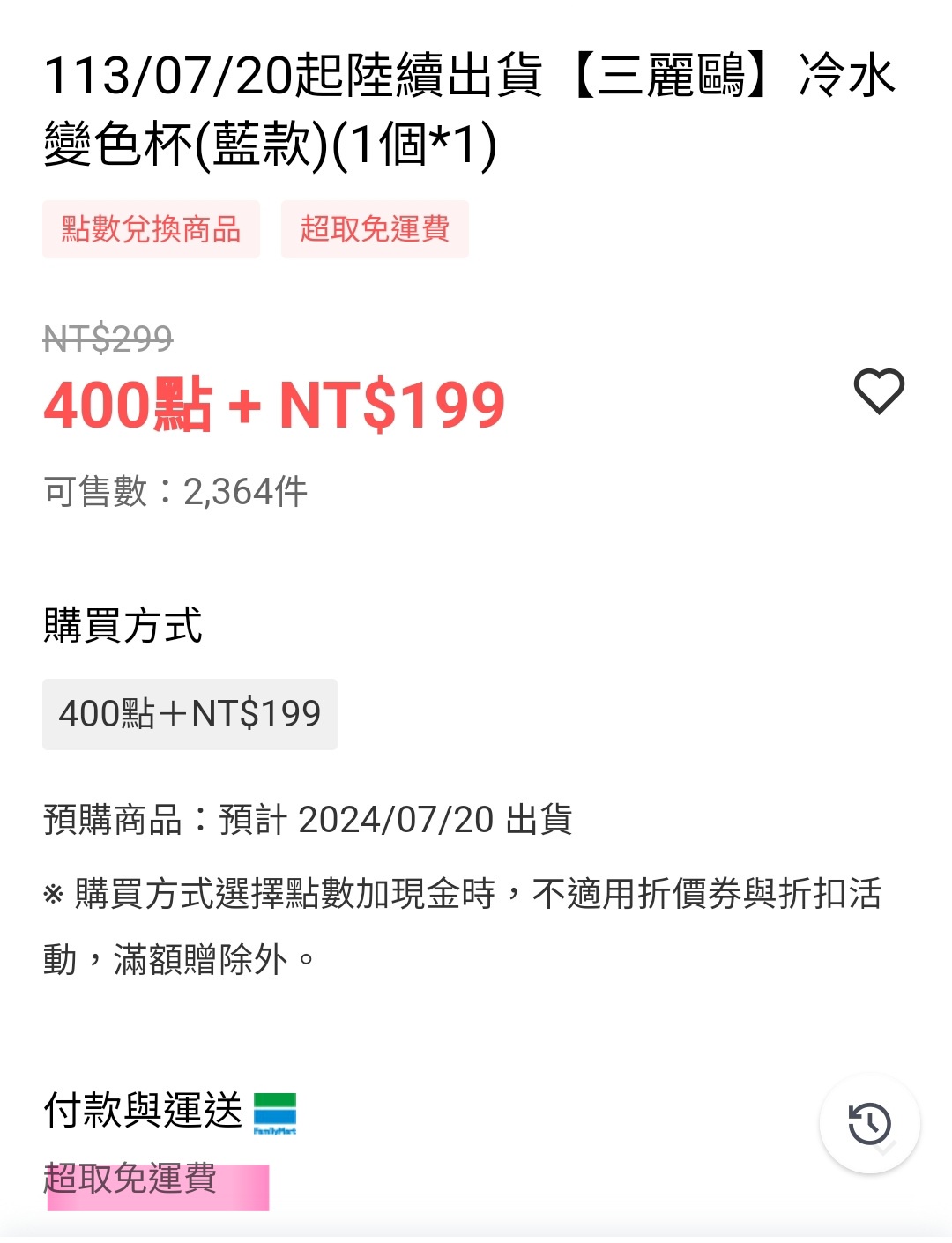 標題Re: [情報] 全家三麗鷗點數加價購