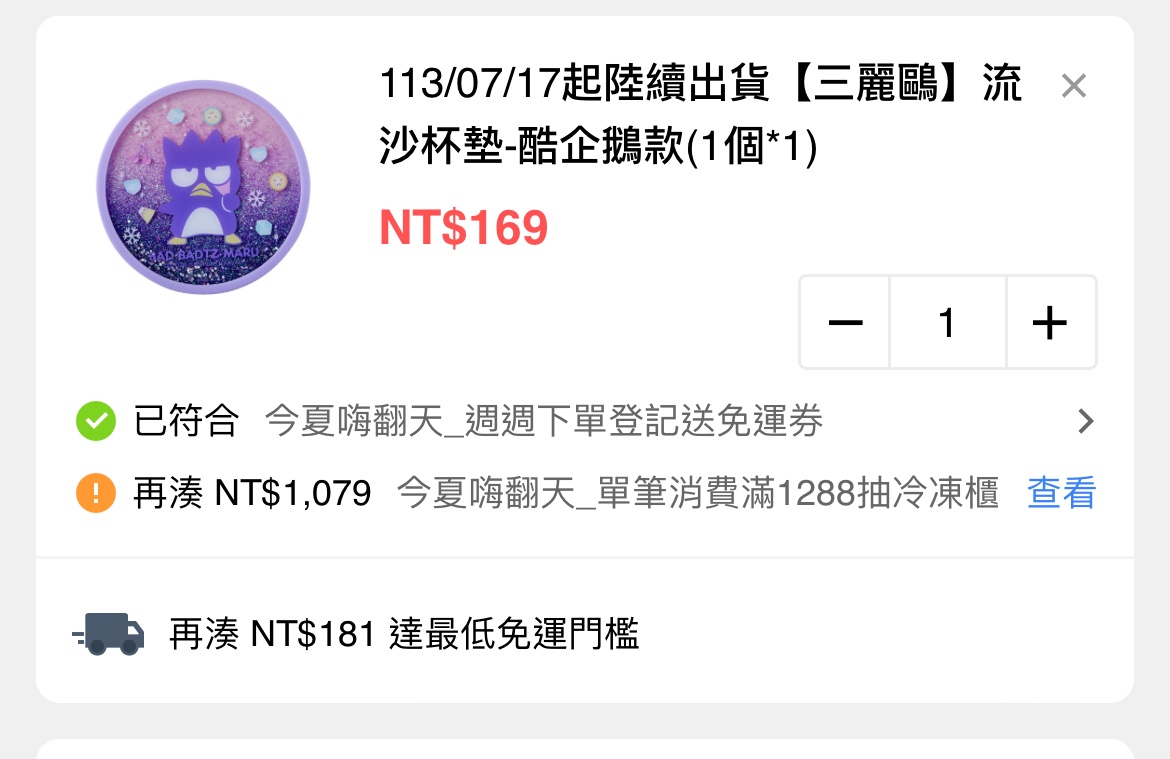 → ryoch: 這篇提到的三麗鷗商品沒有你截圖的169元品項 07/12 17:12