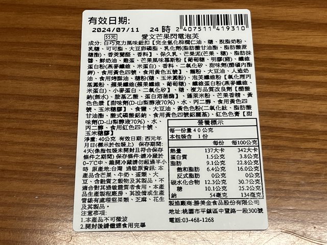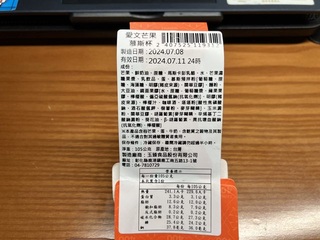 愛文芒果慕斯杯:105公克/看圖/241.1大卡
