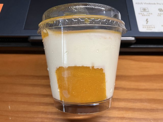 愛文芒果慕斯杯:最下底下的蛋糕體個人還滿喜歡的,應該是有添加芒果原汁,不會太濕