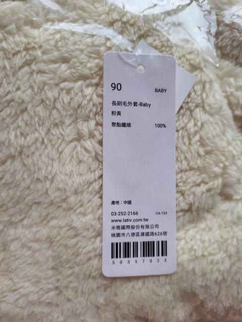 商品名稱:lativ長刷毛外套尺寸90