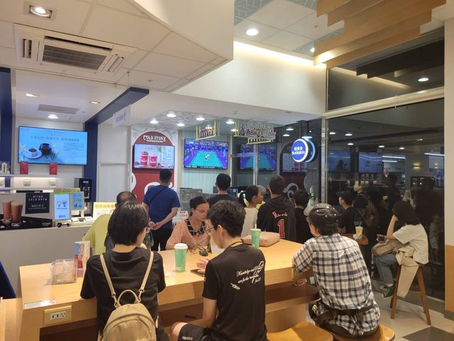 直接坐在店裡看奧運聊天...
