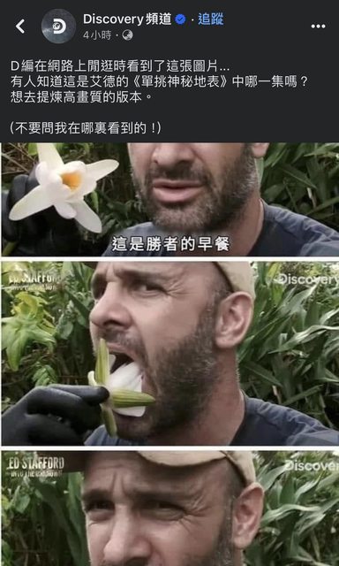 asdf1343: 臉書留言有人說是 Ed Stafford: Into The Unknown 03/18 01:25