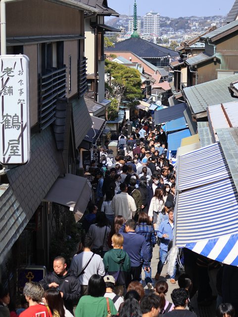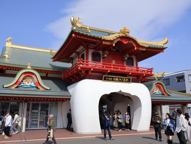 出了車站往前走一段後向右過卞天橋就到了江之島