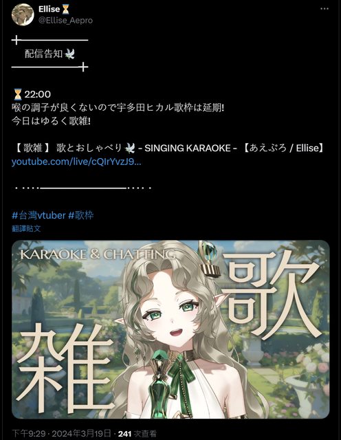 標題[Vtub] Ellise 歌雜 歌とおしゃべり 艾莉絲 Aepro あえぷろ