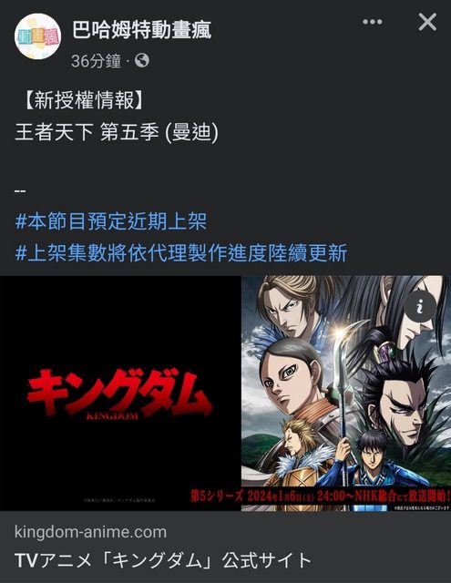 標題[情報] 巴哈姆特動畫瘋新授權 王者天下第五季