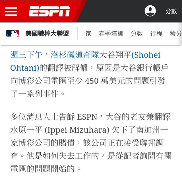 推 anpinjou: 很難想像大谷涉賭 但如果真的有 那大概是大聯盟&日本 03/21 07:41