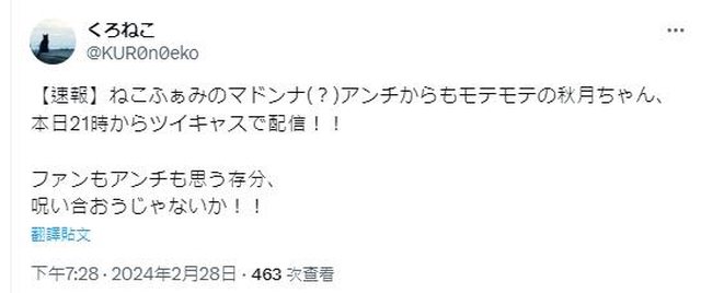 目前秋月已經關閉推特