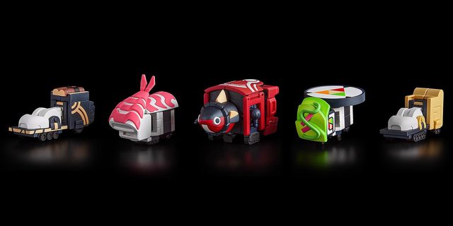 商品介紹 於《蔚藍檔案Blue Archive》中登場的Boss機器人「KAITEN FX Mk.0」化身為組裝模型登 場。 以壽司為靈感的5台車輛透過變身和合體成為巨型機器人「KAITEN FX Mk.0」。 重現遊戲中尚未登場的車輛模式製成組裝模型,並附有11種顏色的跑道、貼紙和說明書。 另外,按照說明書組裝模型,能重現遊戲中的設定色。