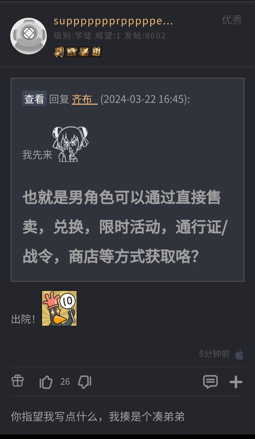 → jayppt: 可能就是 npc和敵人能有男的 但卡池主角群沒有 這樣? 03/22 16:58