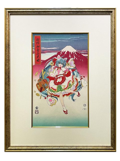 ●商品名:初音ミク×招き猫 浮世絵木版画「招猫初音未来図」