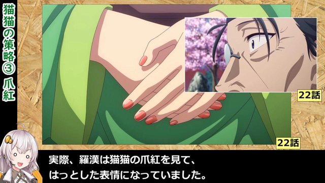 除了象徵著鳳仙的心意絲毫未變之外,另一層涵義就是貓貓提醒羅漢的事情: