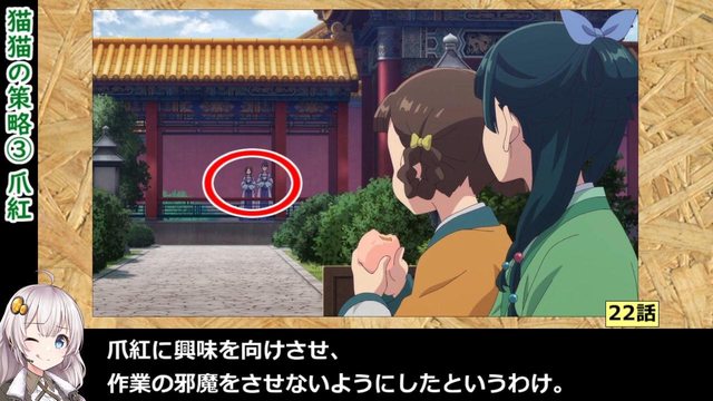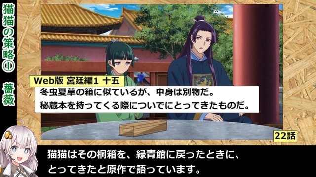 在原作中有特別提到,貓貓會到綠青館的時候特別把一個木盒拿回宮中。