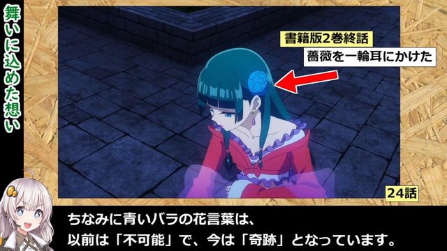第二點就是,其實在原作和漫畫中,木盒裡面除了枯萎的藍玫瑰之外,還放著信。