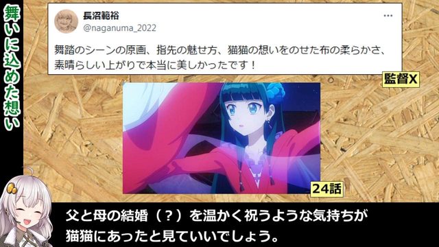 最後在城牆上翩翩起舞的場景,那襲柔軟的羽衣宛如承載了貓貓柔和的感情。