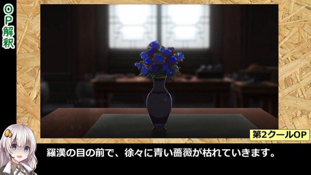 在羅漢面前的藍玫瑰逐漸枯萎,闡述著和鳳仙的距離逐漸遙遠一事。